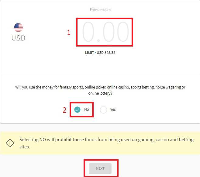 (2)如果您的存款金额不用于赌博,赌场和投注,请选择“否”。