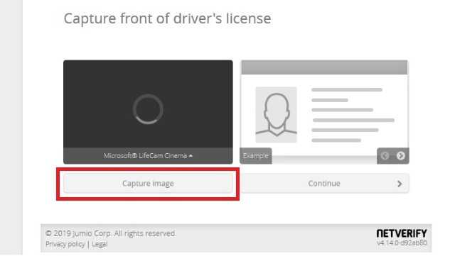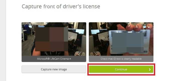 第6步:获取/上传ID的正面图片。单击捕获图像拍照。图像应足够清晰,以读取ID卡上的信息。然后单击继续以对背面进行相同操作。